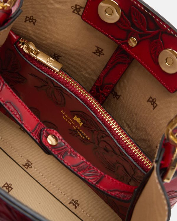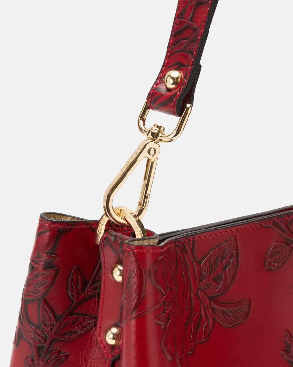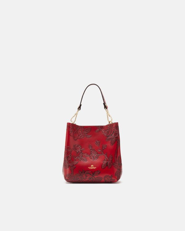 Elevate your everyday style with this perfectly sized bucket bag! Designed for the modern woman on the go, this compact yet spacious bag effortlessly transitions from professional meetings to evening gatherings. Crafted with exquisite attention to detail, the premium leather features the brand’s signature floral rose design that adds a touch of sophisticated elegance. The perfect companion to keep you looking polished from day to night.