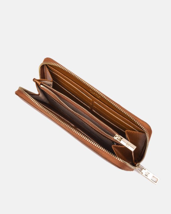 This sophisticated zip-around wallet features elegant gold-toned accents and showcases Cuoieria Fiorentina’s signature craftsmanship. Designed to complement any handbag, it becomes your go-to everyday essential that combines functionality with timeless style. The generously sized interior keeps all your daily essentials organized, making it perfect for busy days while maintaining effortless elegance.