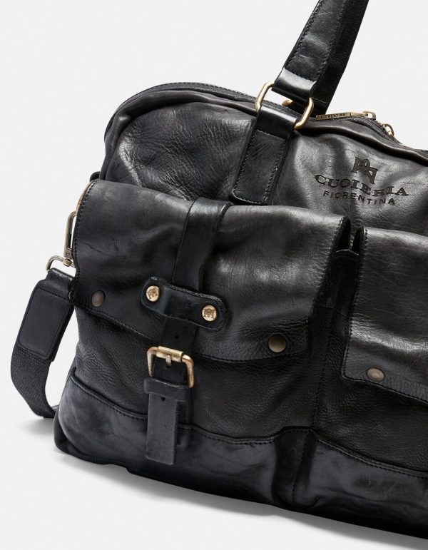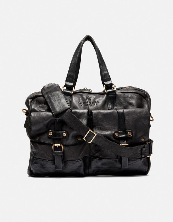 This leather is made with a very complex and difficult treatment. It begins with a skin called CRUST. Each bag is first completely assembled, followed by a dye bath during which it loses 30% of its volume. The bags are then laid out and dried slowly in the open air, then treated one by one by hand with a natural beeswax. This last step gives the product an unmistakable softness and a beautiful aged effect. This type of processing is 100% environmentally friendly and metal free.