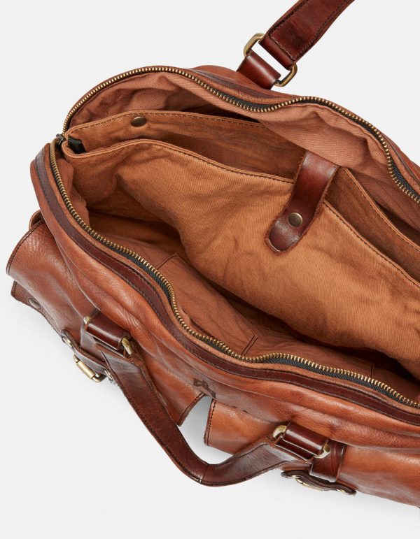 Crafted from durable natural leather, the Millennial briefcase has enough space for a laptop, numerous documents and a change of clothes. The eye-catching details, antique brass metal zips and irresistible two-tone vintage effect make it an ideal accessory for students and professionals that will suit any outfit, from classic to sporty. For the man who is projected into the future.