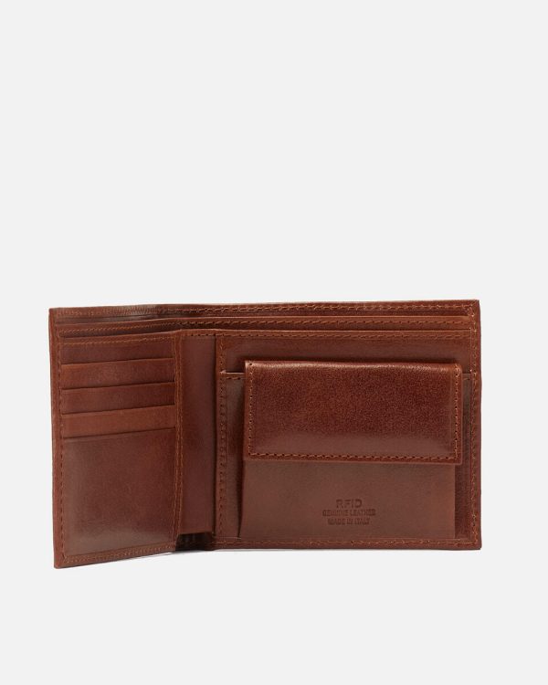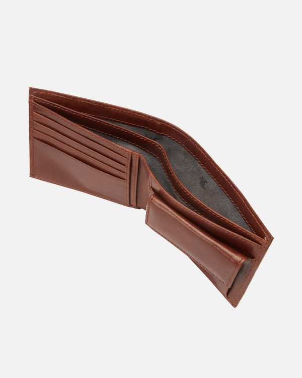 Internal details: 4 credit card slots, double bill compartment, four pockets and snap button closure coin purse.