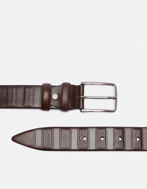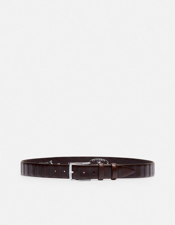 Men Men Belts | Cuoieria Fiorentina Leather Belt For Jeans With Vertical Striped Design Dark Brown