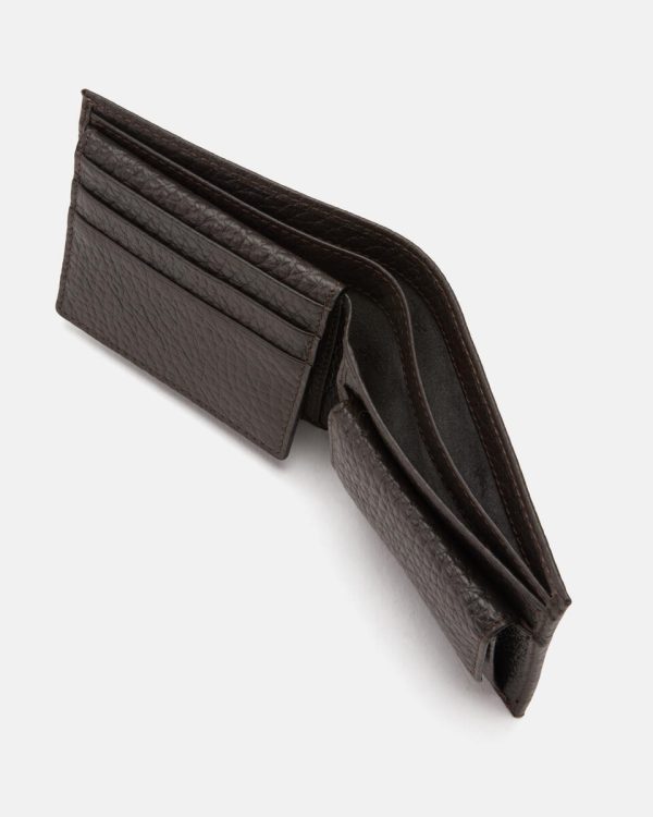Internal details: 8 credit card slots, double bill compartment, three pockets and snap button closure coin purse.