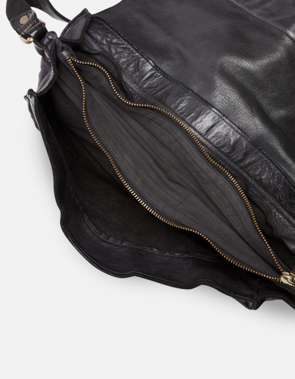 This leather is made with a very complex and difficult treatment. It begins with a skin called CRUST. Each bag is first completely assembled, followed by a dye bath during which it loses 30% of its volume. The bags are then laid out and dried slowly in the open air, then treated one by one by hand with a natural beeswax. This last step gives the product an unmistakable softness and a beautiful aged effect. This type of processing is 100% environmentally friendly and metal free.