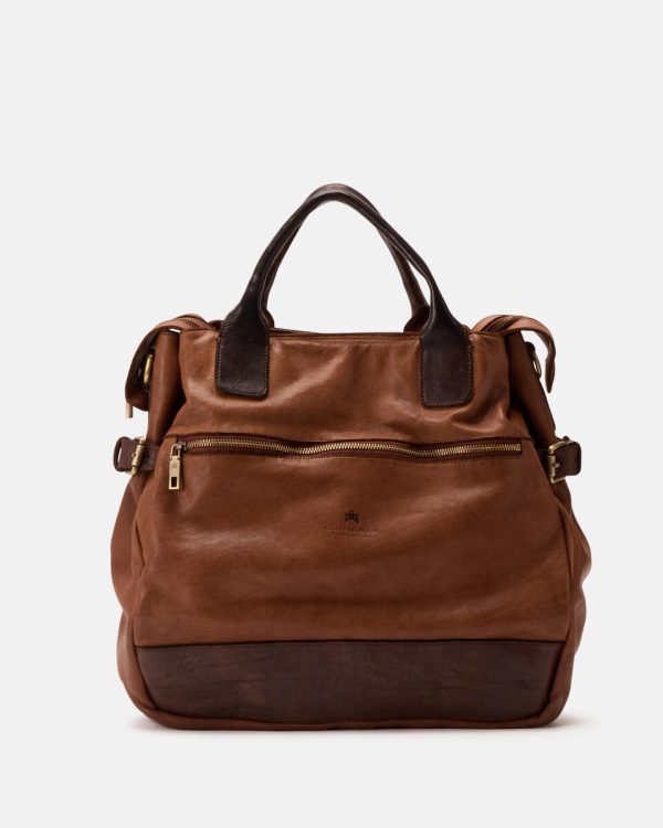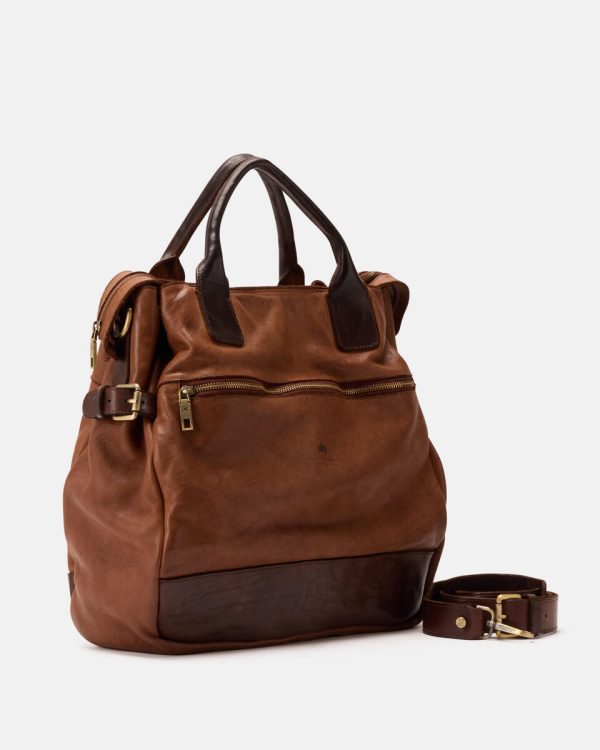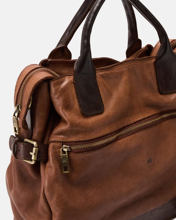 Expertly crafted from premium natural leather, this sophisticated tote bag offers generous capacity to securely transport your laptop, important documents, and daily essentials. The distinctive vintage character, enhanced by antique brass hardware and a beautifully weathered two-tone finish, creates a versatile professional accessory that transitions seamlessly from office settings to casual outings. Designed for the modern gentleman who values both style and functionality.