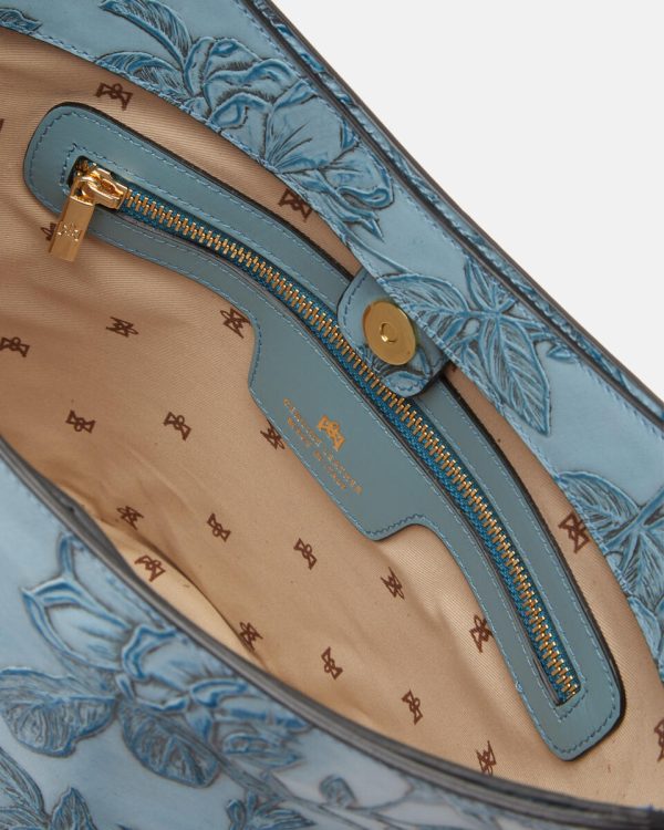Mimi represents a true style icon and represents a worldwide exclusive of the brand. The peculiarity is contained in the long articulated process consisting of over 13 processing steps of the floral motif. Not only calfskin, but a true artwork, expertly hand-painted on different levels. The end result is a unique material of its kind, with which small masterpieces are made.