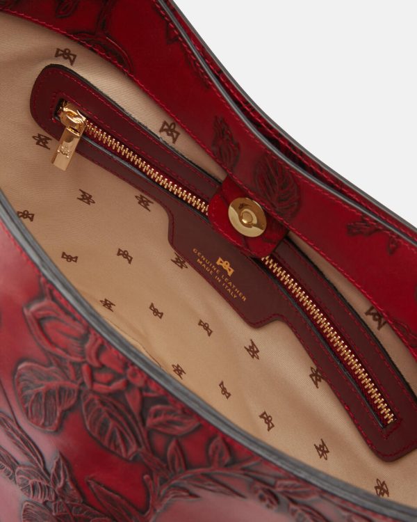 Mimi represents a true style icon and represents a worldwide exclusive of the brand. The peculiarity is contained in the long articulated process consisting of over 13 processing steps of the floral motif. Not only calfskin, but a true artwork, expertly hand-painted on different levels. The end result is a unique material of its kind, with which small masterpieces are made.
