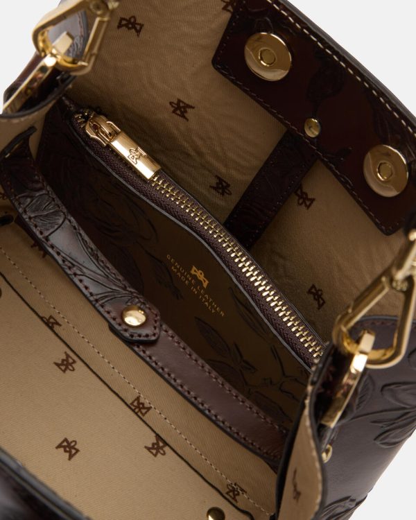 Mimi represents a true style icon and represents a worldwide exclusive of the brand. The peculiarity is contained in the long articulated process consisting of over 13 processing steps of the floral motif. Not only calfskin, but a true artwork, expertly hand-painted on different levels. The end result is a unique material of its kind, with which small masterpieces are made.