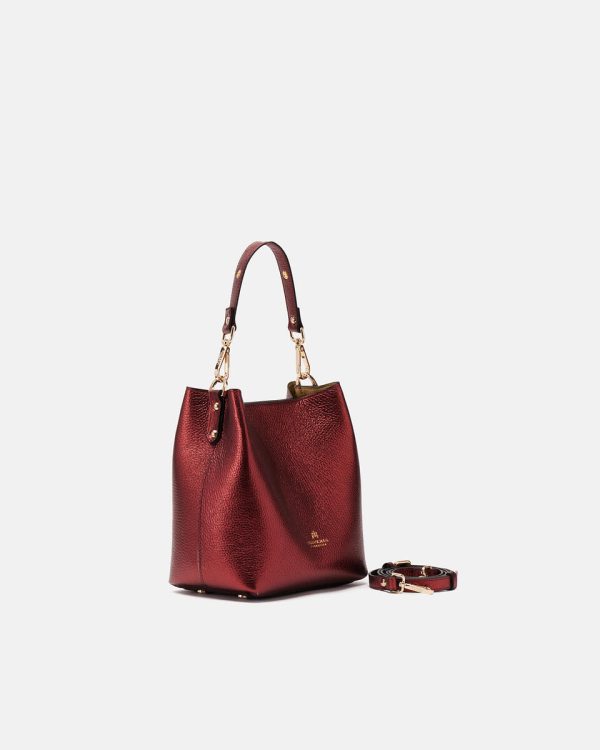 A bucket full of style! When the days get hectic, between work commitments and drinks with friends, what you need is this Small Bucket. A practical and contained bag that becomes contemporary, to carry around between business meetings and galas, with a metallic leather enriched with full-bodied colours, full of character. To shine throughout the day.