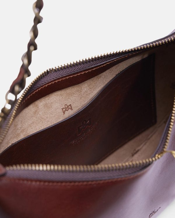 The ideal bag for those who want the moon! The small hobo Eva, with its delightful half-moon shape, can become intriguing and cheerful when used with the chain and extremely comfortable when used with the adjustable shoulder strap. The small but ample space inside makes her the perfect friend on shopping days in the city centre and the perfect character for more institutional dinners. An explosion of style.