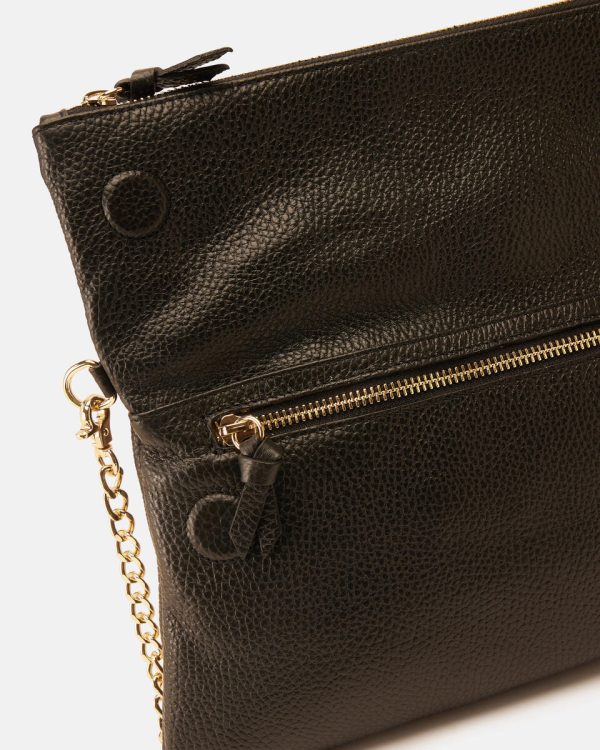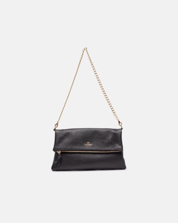 External details: flap and zip closure with gold embossed logo; frontal pocket with zip closure.