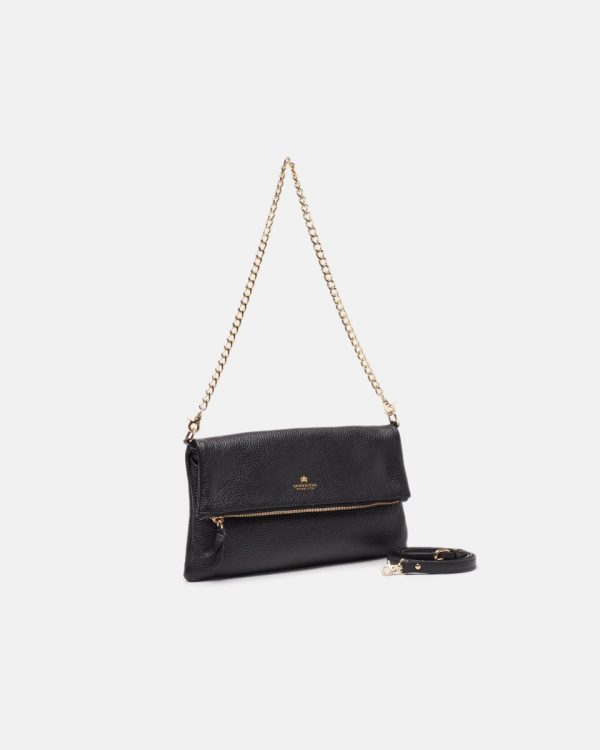 Slim profile for this glamorous Velvet clutch with envelope architecture, perfect for any social occasion. With a soft touch, the small block-coloured shoulder strap is a stylish companion on evenings when you need a golden touch to brighten up your look. It is perfect for adding a touch of elegance to your leisure outfits.