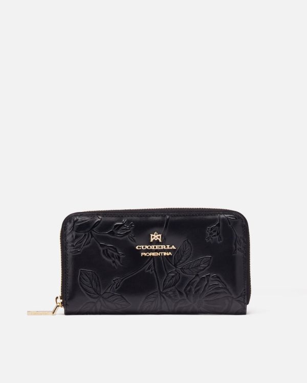Women Leather Wallets | Cuoieria Fiorentina Zip Around Wallet Black