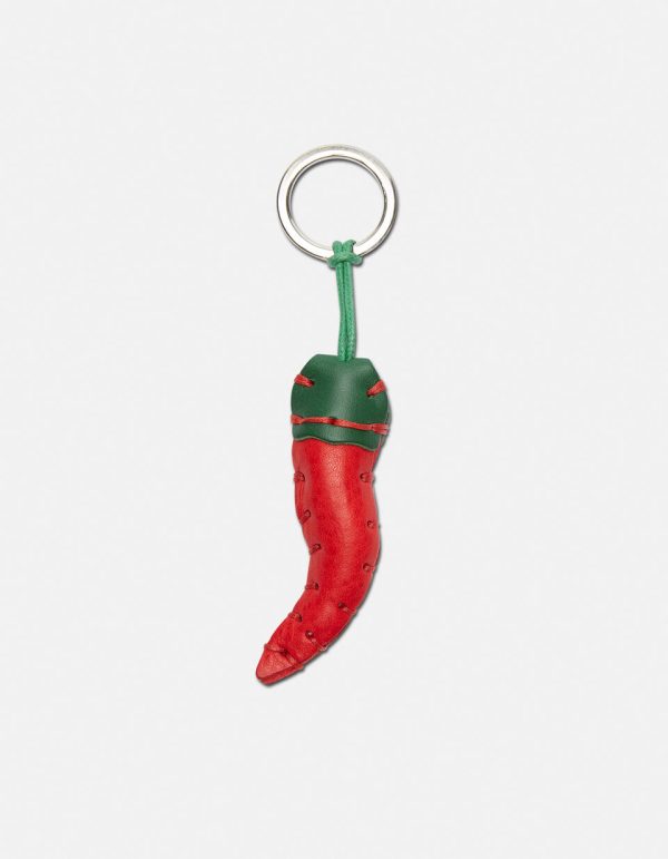 Stylish leather keychain featuring a vibrant chili pepper design, perfect for everyday carry. Crafted from premium vegetable-tanned leather, this keyring combines luxurious softness with distinctive hand-applied stitching that adds artisanal character.