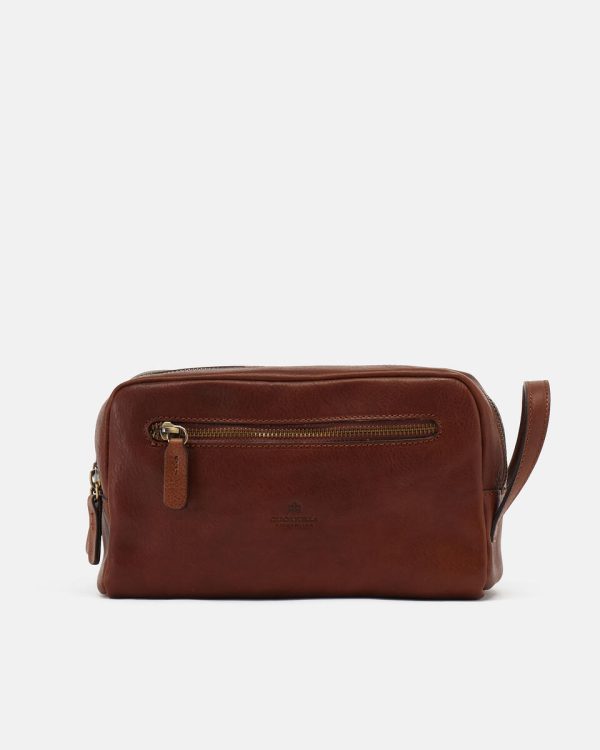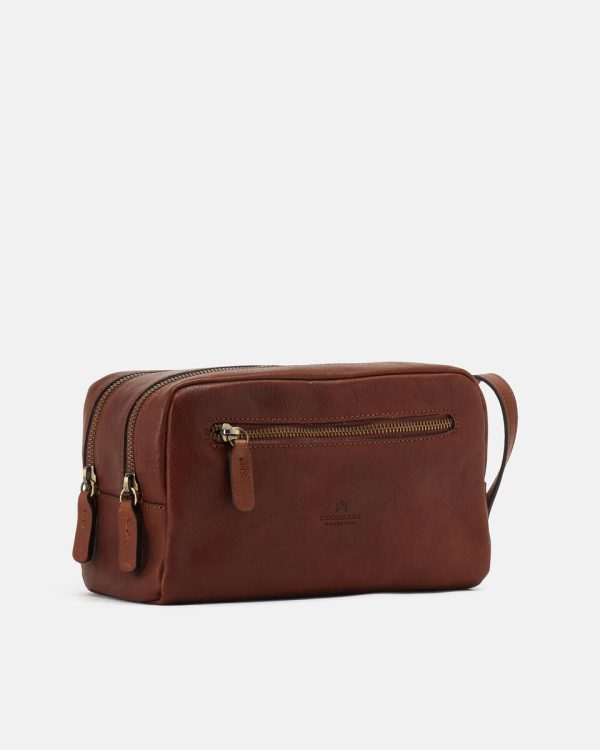 A handy beauty-case, durable and with a charming vintage effect. The Warm and Colour collection offers valuable solutions for the busy man on the move. Thanks to the practical wrist strap with its practical wrist strap, gold metal finish and spacious interior, it is the ultimate expression of class and functionality. For those who do not allow for sacrifices.