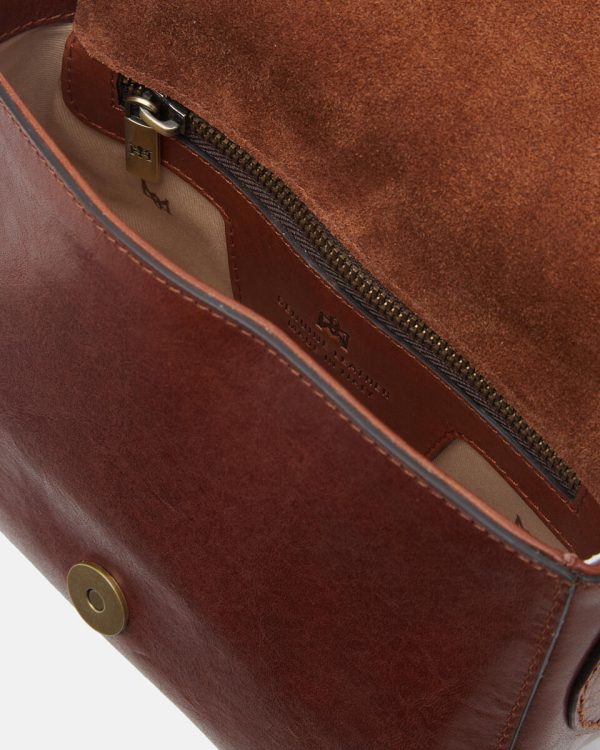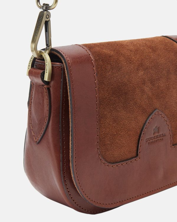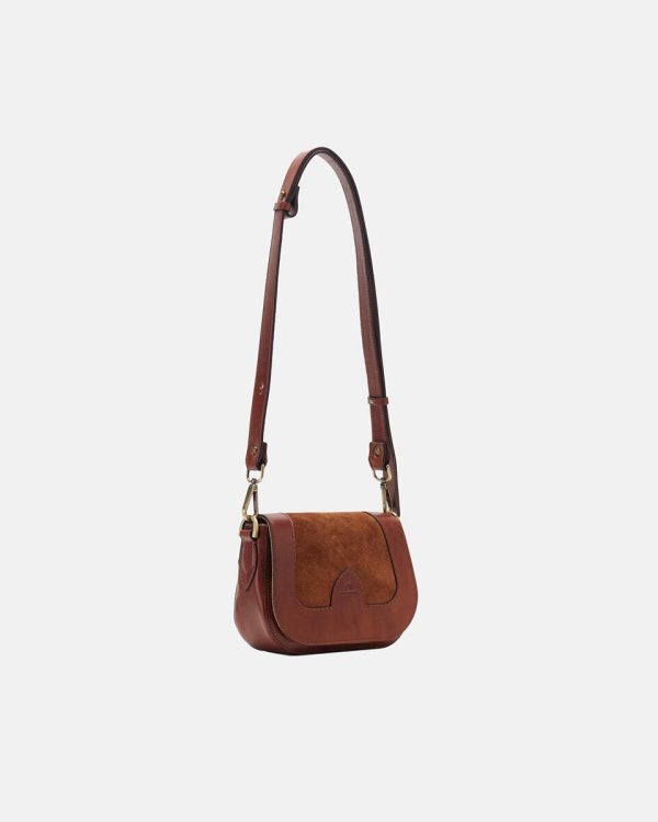 So that you don’t miss a beat, the small messenger bag Stella, with its elegant aged brass-coloured details and the vintage hints of suede leather, transforms from a practical shoulder bag for everyday tasks into a glamorous jewel for leisure time. Stella accompanies your days with elegance and practicality, without renouncing a hint of femininity. The simple yet refined lines and versatility of use make this messenger the ideal companion for all moments, from work to informal engagements, without ever going unnoticed.