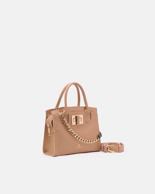External details: front pocket with swivel closure with leather detail and logo printed in gold color.
