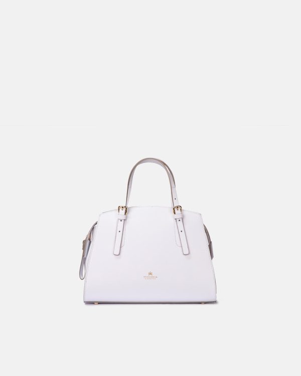 Refined and minimal, this small Alice tote bag in palmellato leather combines lightness and top quality materials with a slightly retro design that makes it formal and precious. It has a double handle, an adjustable and removable shoulder strap, golden metal details, studs on the bottom and embossed logo. The lined spacious interior has a rear pocket for documents and is ideal for storing your smartphone, camera, wallet and other personal effects. Perfect for formal events, it adds a chic touch to even the most casual look. Finely manufactured in Italy.