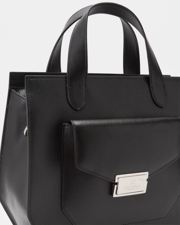 Refined and precious, the Penta tote bag expresses its elegance and character through a geometric shape that gives it a unique and exclusive appeal. A stylish accessory that, thanks to its removable shoulder strap, becomes the perfect solution between practicality and style. To be matched like a precious jewel thanks to the metal inserts, it is ideal worn with both classy and more sporty outfits to shine at all times.