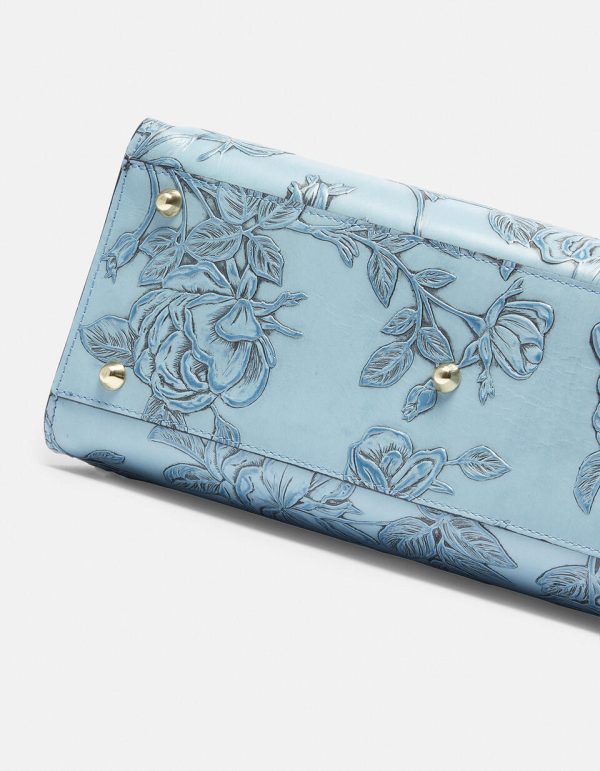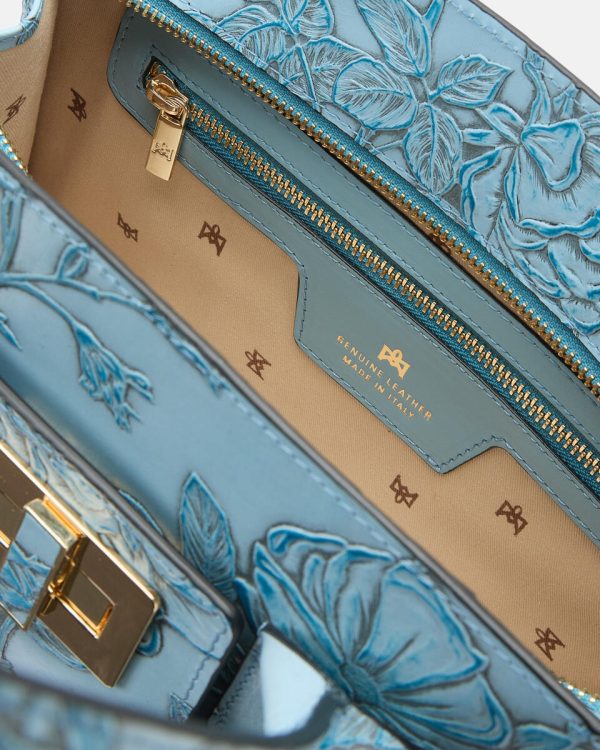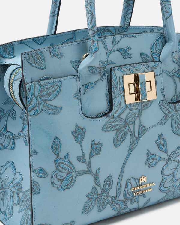 Mimi represents a true style icon and represents a worldwide exclusive of the brand. The peculiarity is contained in the long articulated process consisting of over 13 processing steps of the floral motif. Not only calfskin, but a true artwork, expertly hand-painted on different levels. The end result is a unique material of its kind, with which small masterpieces are made.