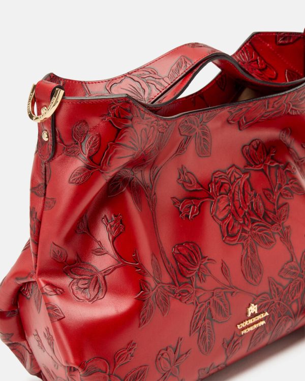The Gaia tote bag is filled with stylish details. Rich leather embellished with the iconic roses from the Mimi’s collection and a sinuous shape to make one’s outfit exclusive and unique. The bright, golden, characterful details make the bag stand out and turn it into a bold accessory. The capacious space inside makes it ideal for going from the office to an aperitif in the city centre after work. To leave your mark, even through a bag.
