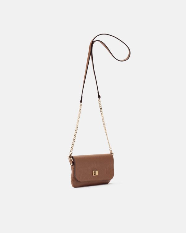 Shoulder strap: double material leather/metal, removable with drop 57 cm.