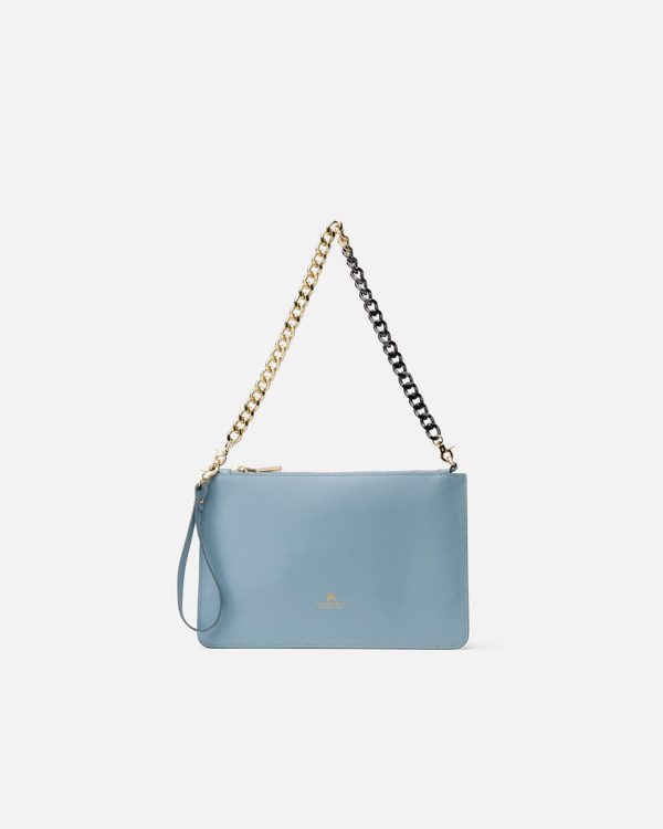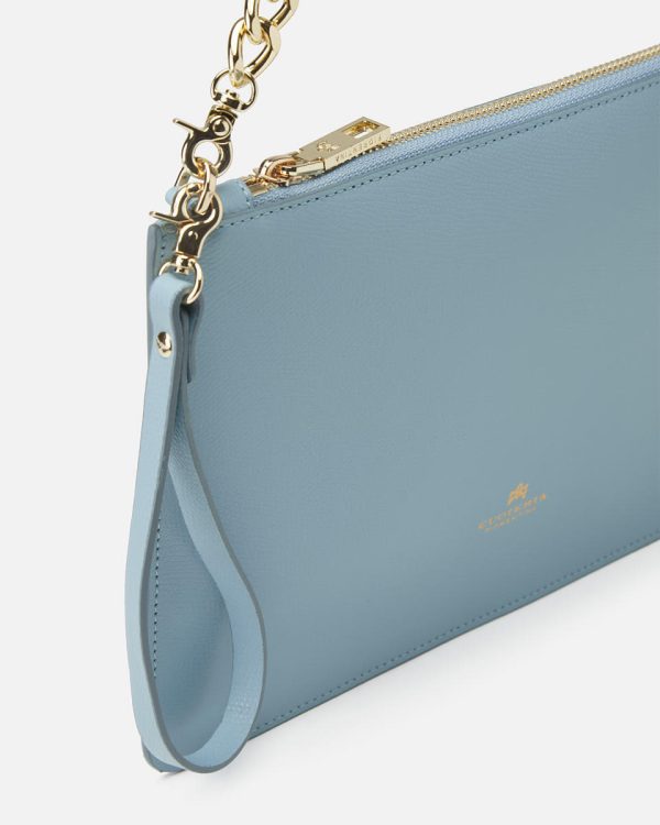 This sleek, sophisticated clutch features a streamlined design that keeps your essentials organized during evening events and nights out. Crafted from premium Palmellato leather with a distinctive textured finish, this versatile accessory transitions effortlessly from shoulder bag to handheld pochette. The elegant gold chain strap adds a luxurious touch while remaining completely removable for multiple carrying options. Perfect for the fashion-forward woman who appreciates both style and functionality.