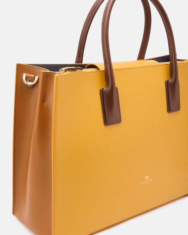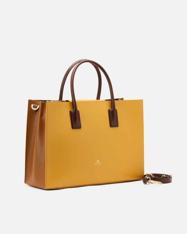 Discover the ultimate everyday essential that combines sophistication with practical functionality. This stunning tote bag features a refined, structured design that transitions seamlessly from professional settings to weekend getaways. The elegant rectangular silhouette is accentuated by our signature golden logo, creating a versatile accessory that complements both casual outfits and formal attire. With both a removable shoulder strap and dual top handles, you get multiple carrying options that adapt to your busy lifestyle.