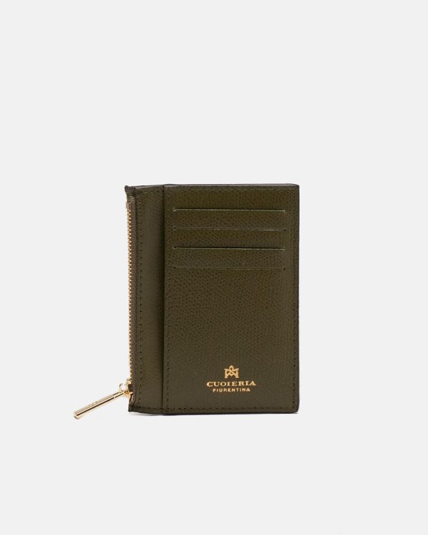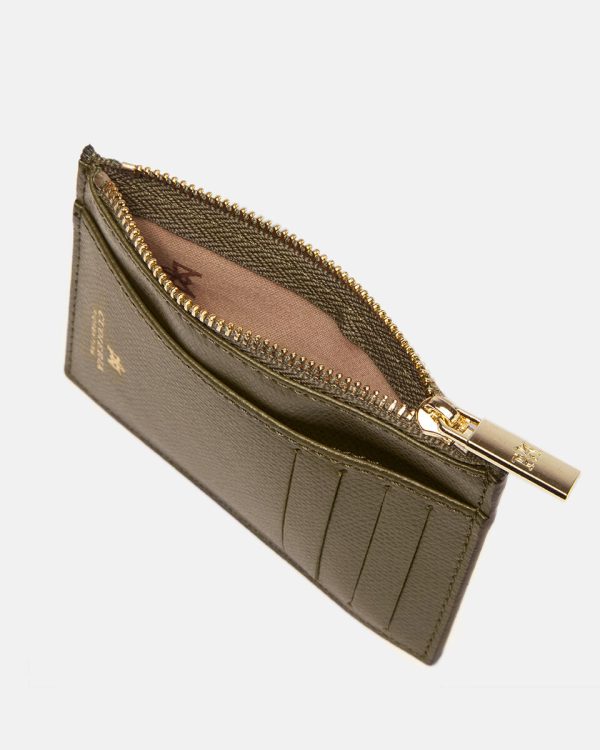 External details: 8 credit card slots, 2 lateral pockets, zipped purse and gold coloured fire printed logo.
