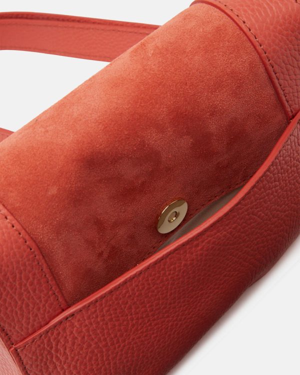 This soft, full-grain calfskin leather is tumbled to achieve a beautiful, more uniform grain. The suede details are made from the lower part of the leather, which is softer and more flexible than the outer layer.